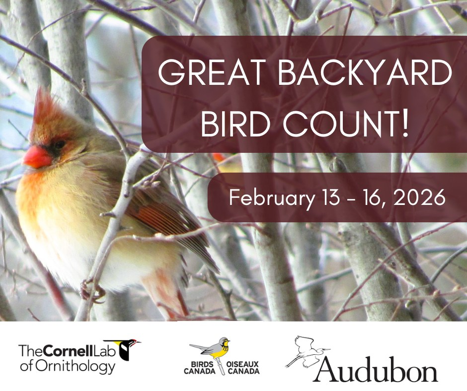 • Join the Great Backyard Bird Count! The Great Backyard Bird Count (GBBC) is a free, fun, and easy event that engages bird watchers of all ages in counting birds to create a real-time snapshot of bird populations. Participants are asked to count birds for as little as 15 minutes on one or more days of the four-day event and report their sightings online. The 29th annual GBBC will be held Friday, February 13 to Monday, February 16, 2026. Please visit the official website at www.birdcount.org for more information on how to join the fun!